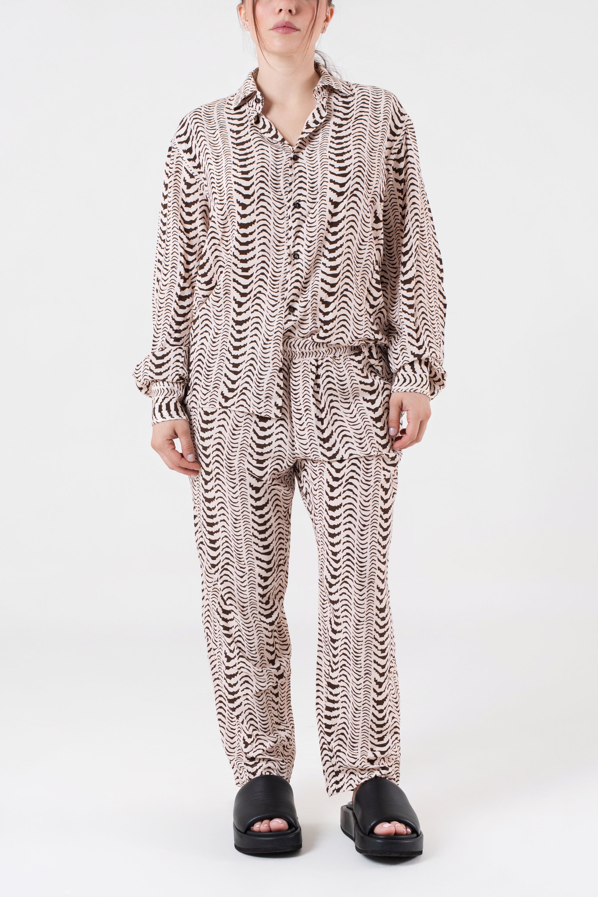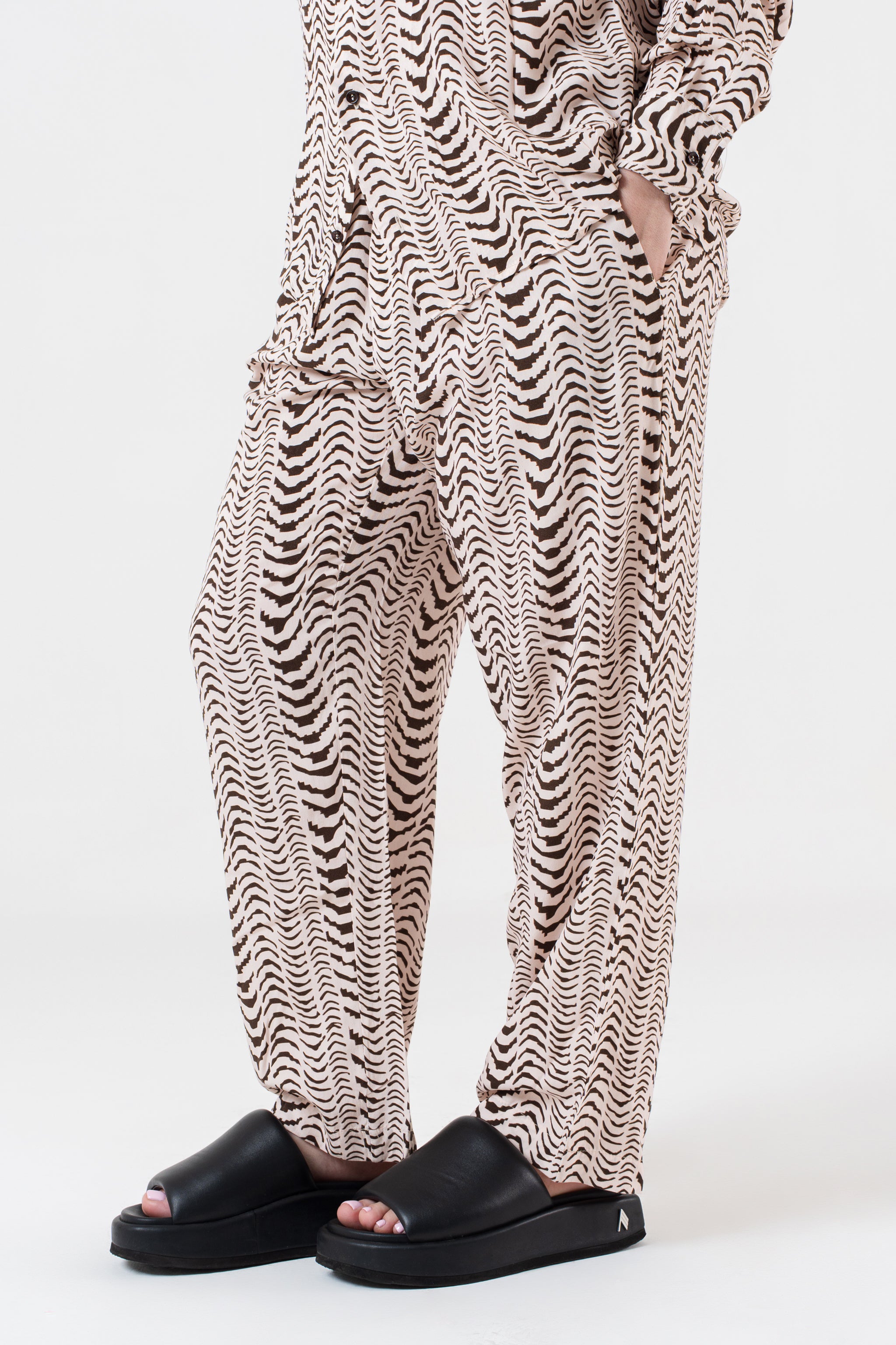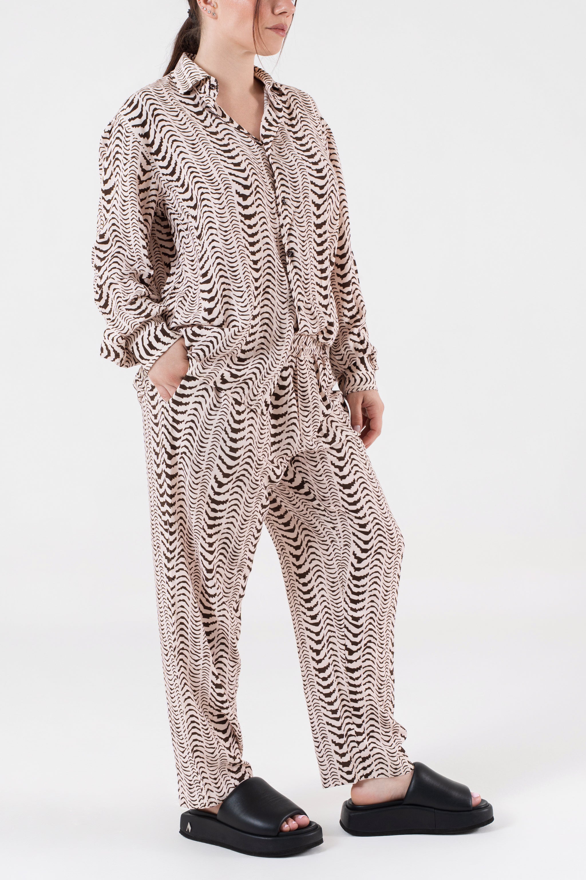- pantalone con elastico e finta patta