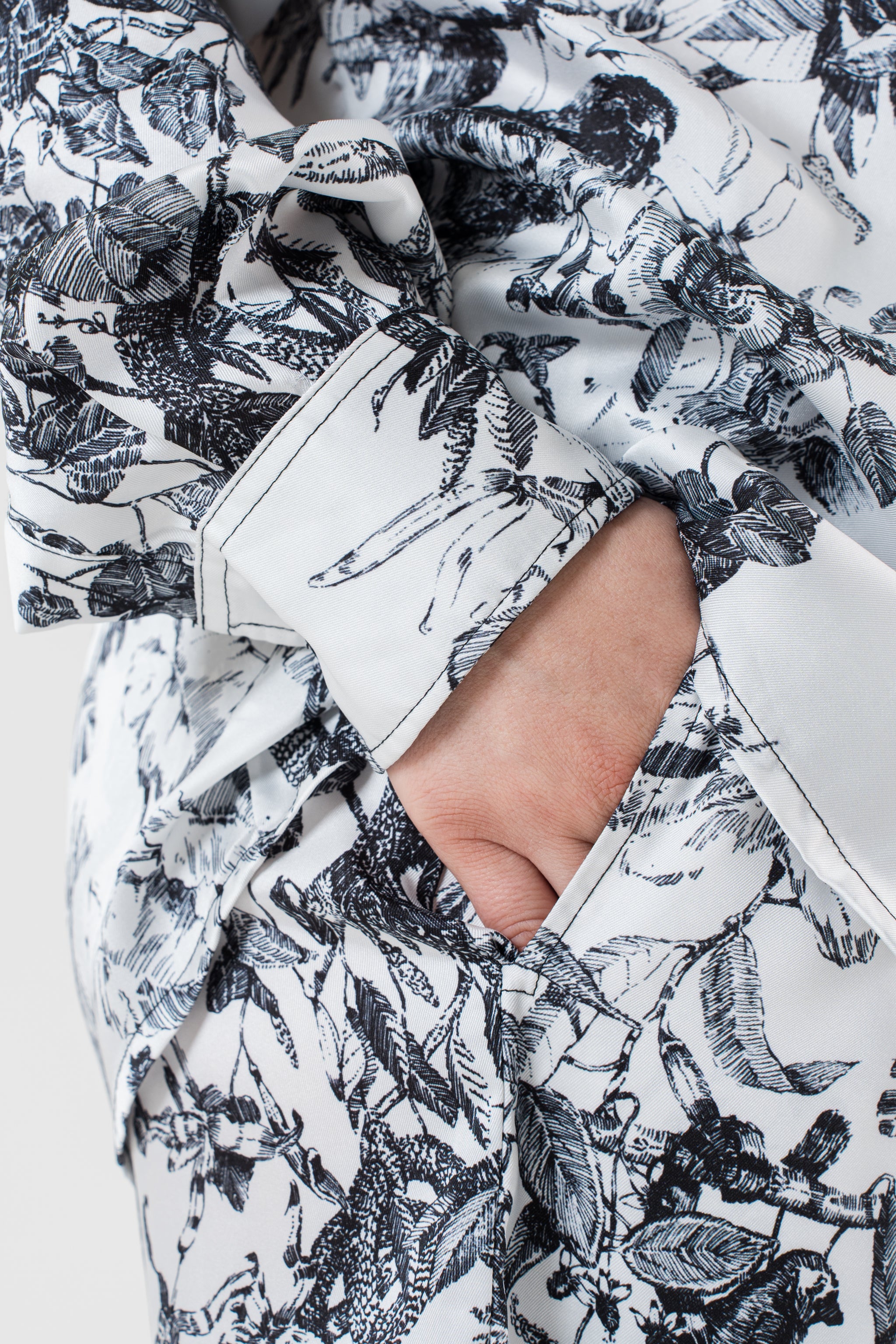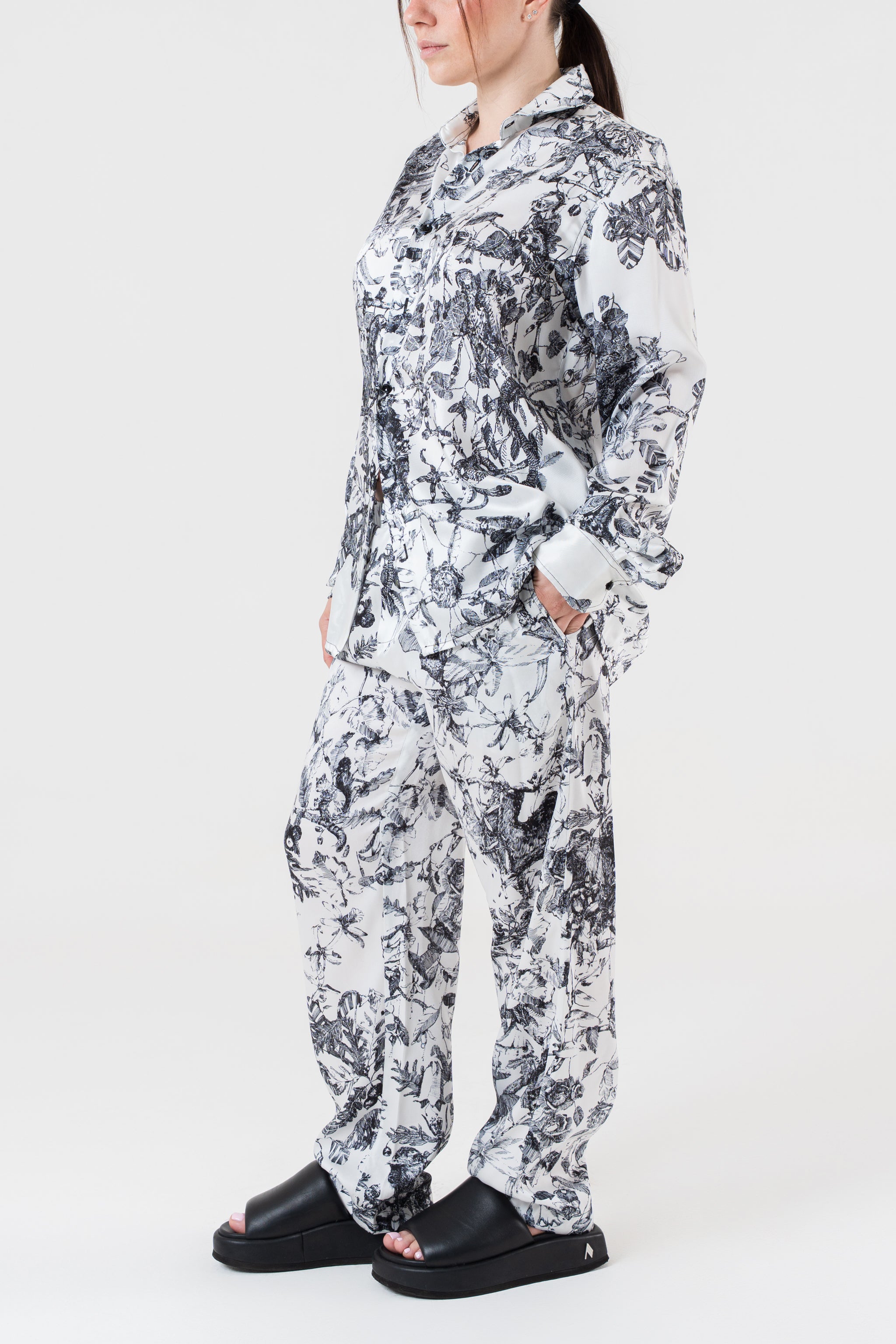 Un'espressione di eleganza e natura, il Coordinato Jungle White esalta il design selvaggio con una stampa giungla su fondo bianco. Questo coordinato combina stile audace e comfort, con una vestibilità oversize che lo rende ideale per qualsiasi occasione. Made in Italy.