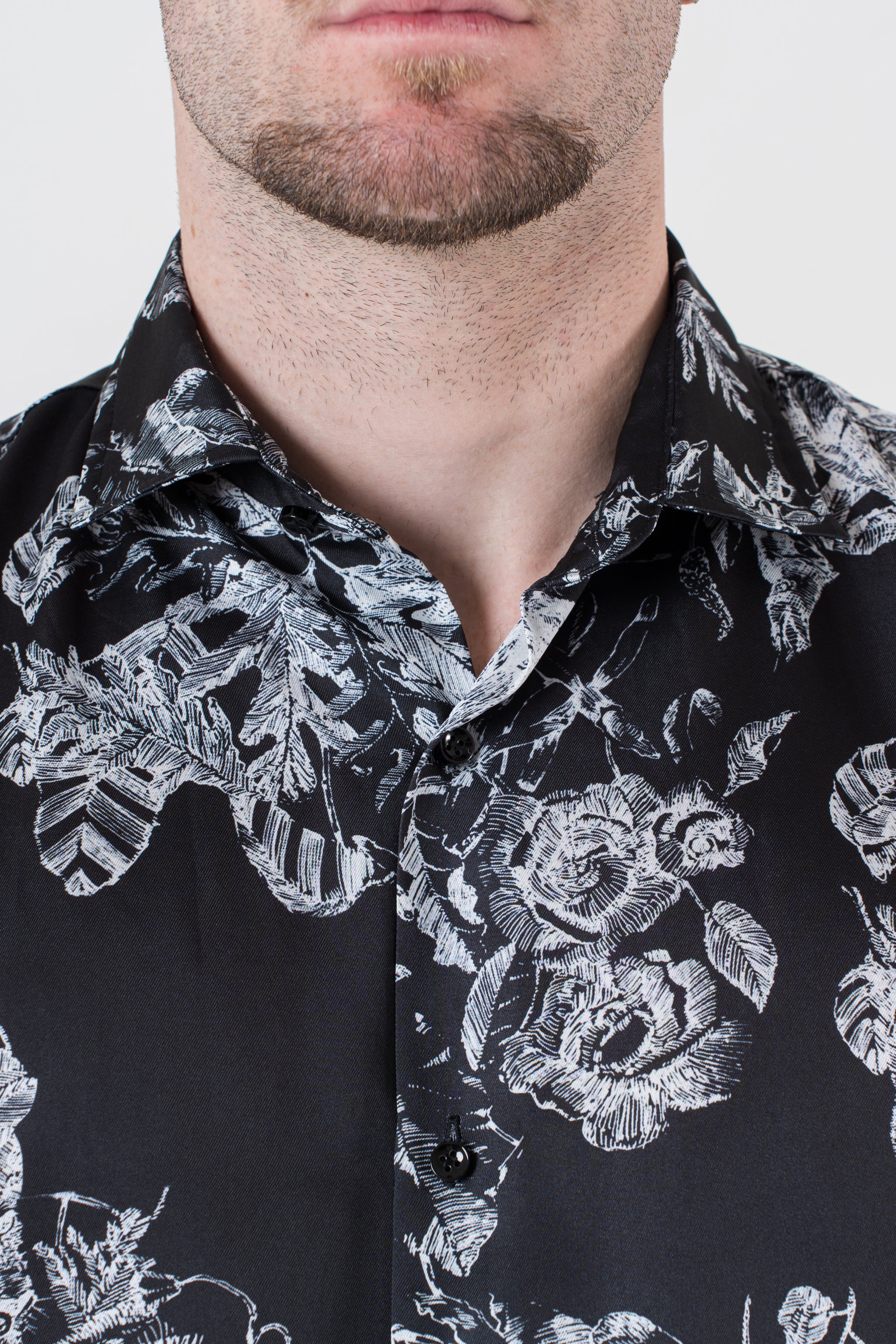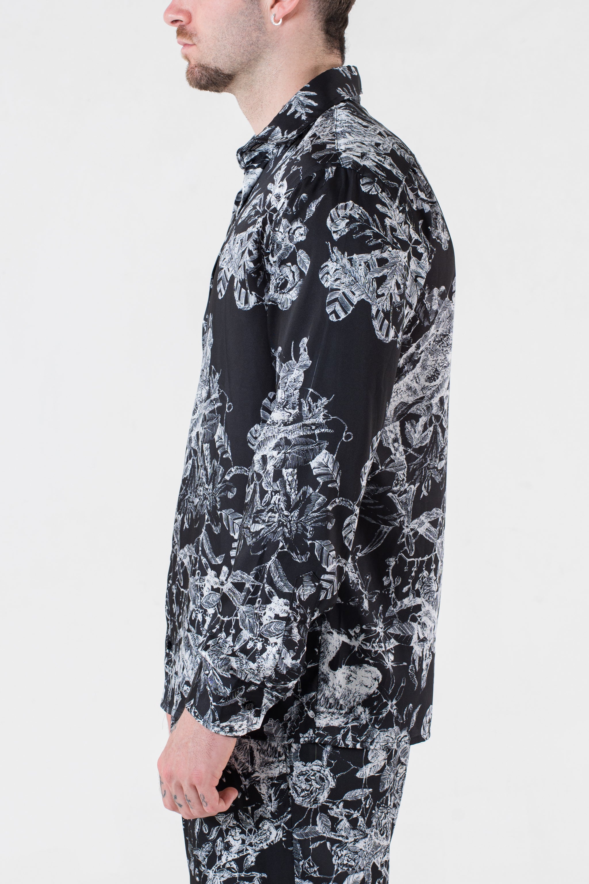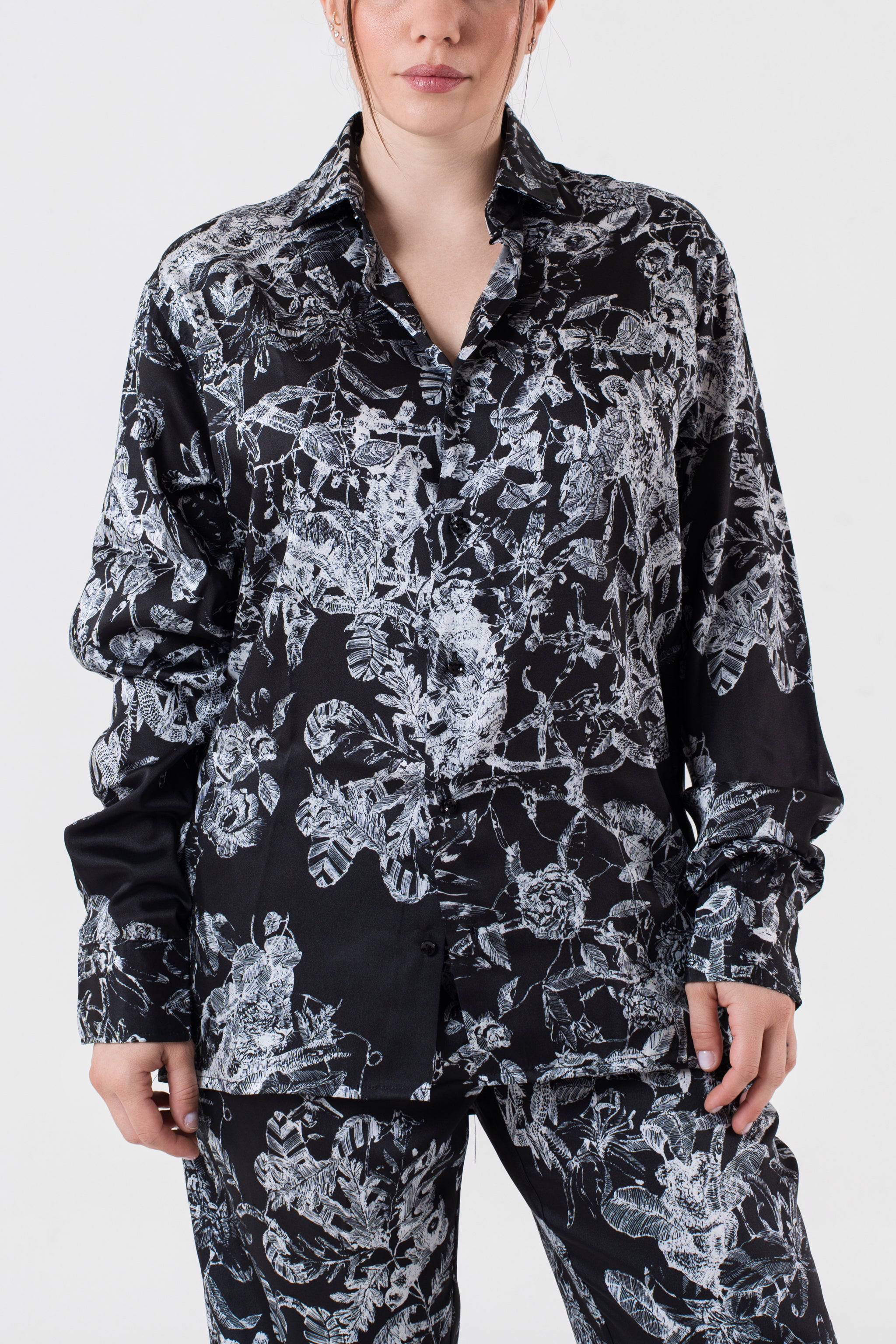 Scopri il lato selvaggio della moda con il Coordinato Jungle Black, che presenta una stampa di giungla elegante su un fondo nero profondo. La camicia a manica lunga e i pantaloni con elastico sono pensati per chi cerca un look audace ma raffinato. Made in Italy.