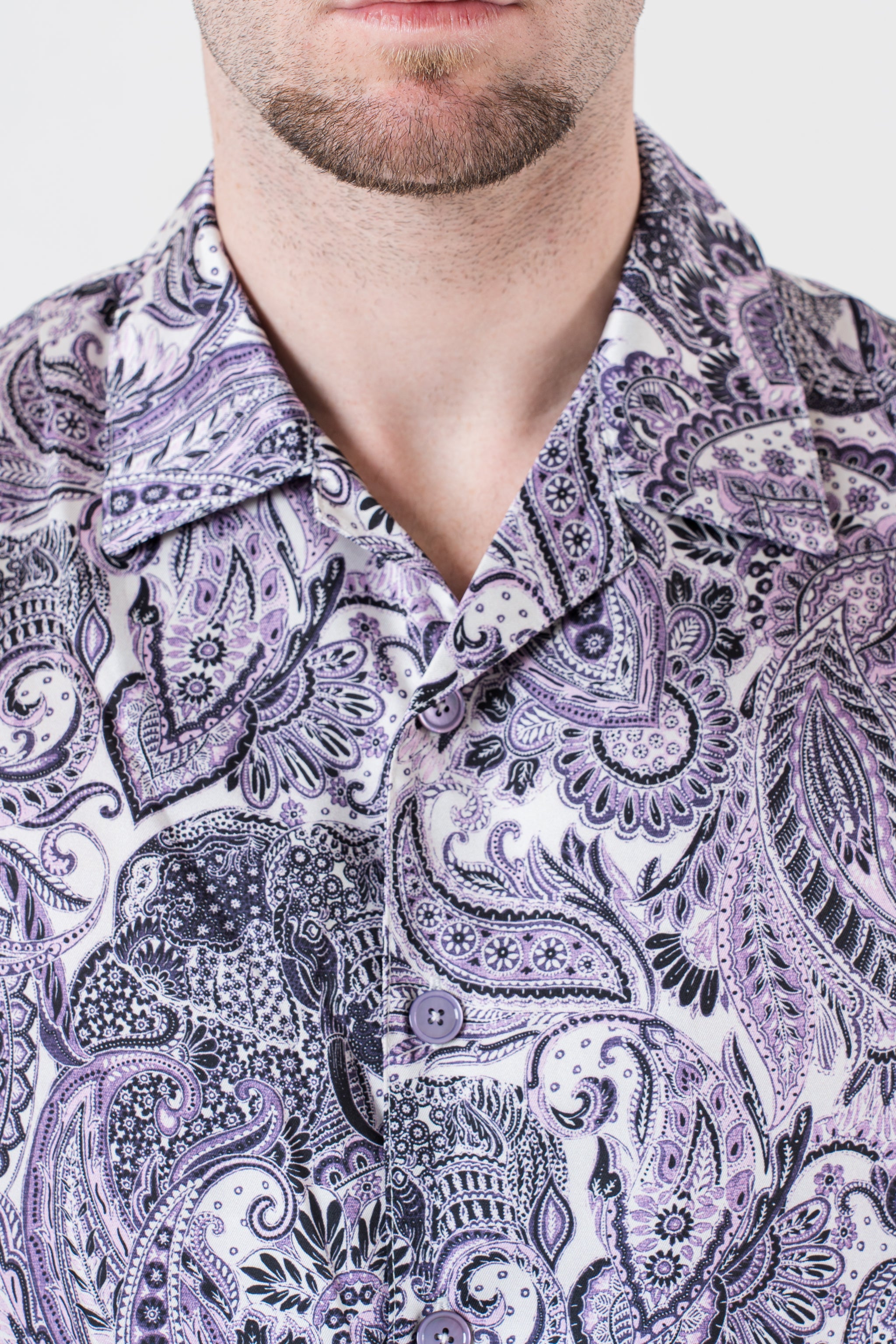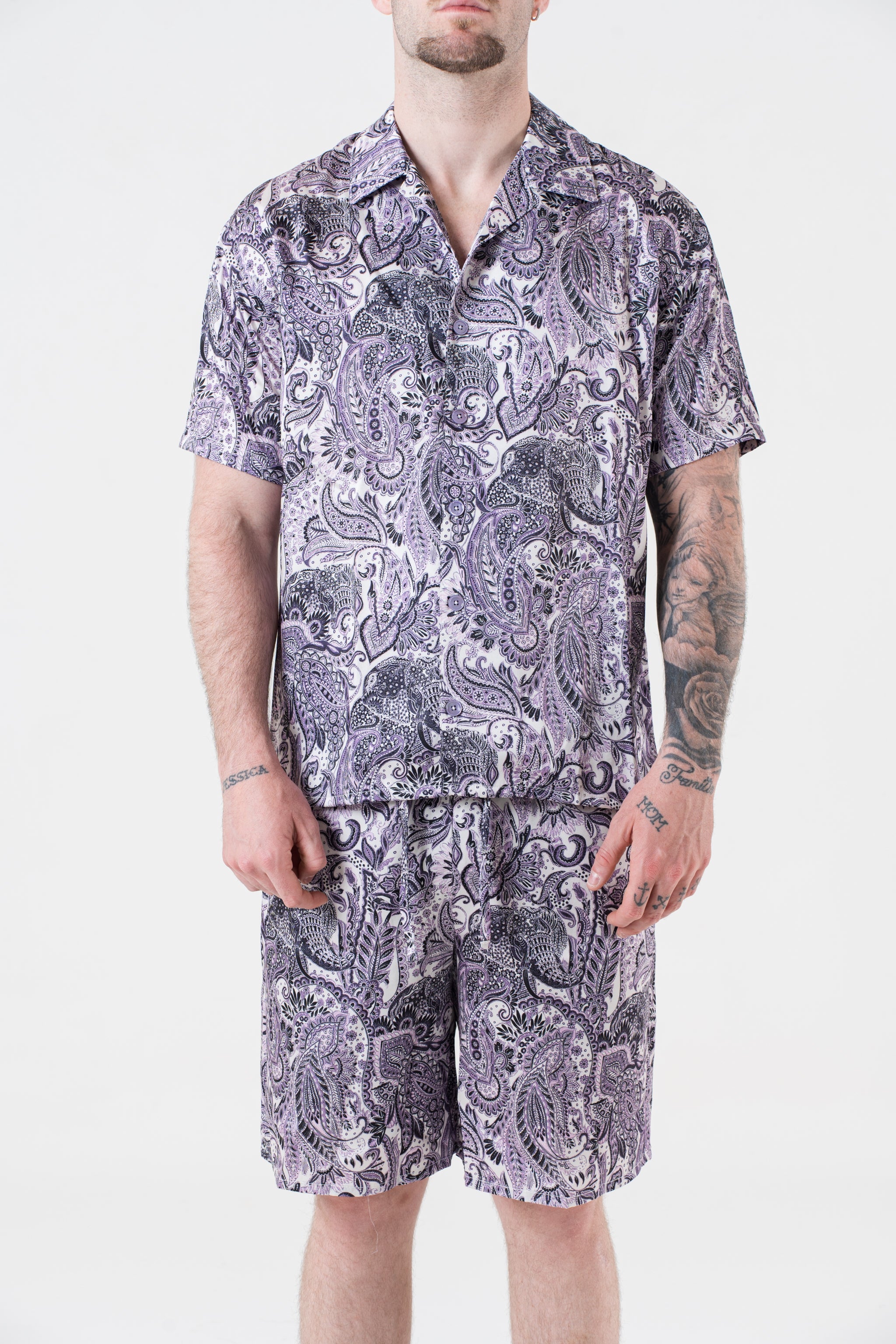Raffinato e intramontabile, il coordinato cashmere di légèreté presenta una stampa cachemire classica sui toni del viola su fondo bianco, che trasforma un outfit casual in una dichiarazione di stile senza tempo. Questo set include una camicia a mezza manica con colletto a bavero e bermuda dotati di elastico, coulisse e tasche anteriori. La vestibilità oversize assicura massimo comfort e una silhouette elegante. Perfetto per occasioni casual ma chic, questo coordinato esclusivo è una testimonianza dell'artigianalità italiana. Made in Italy.